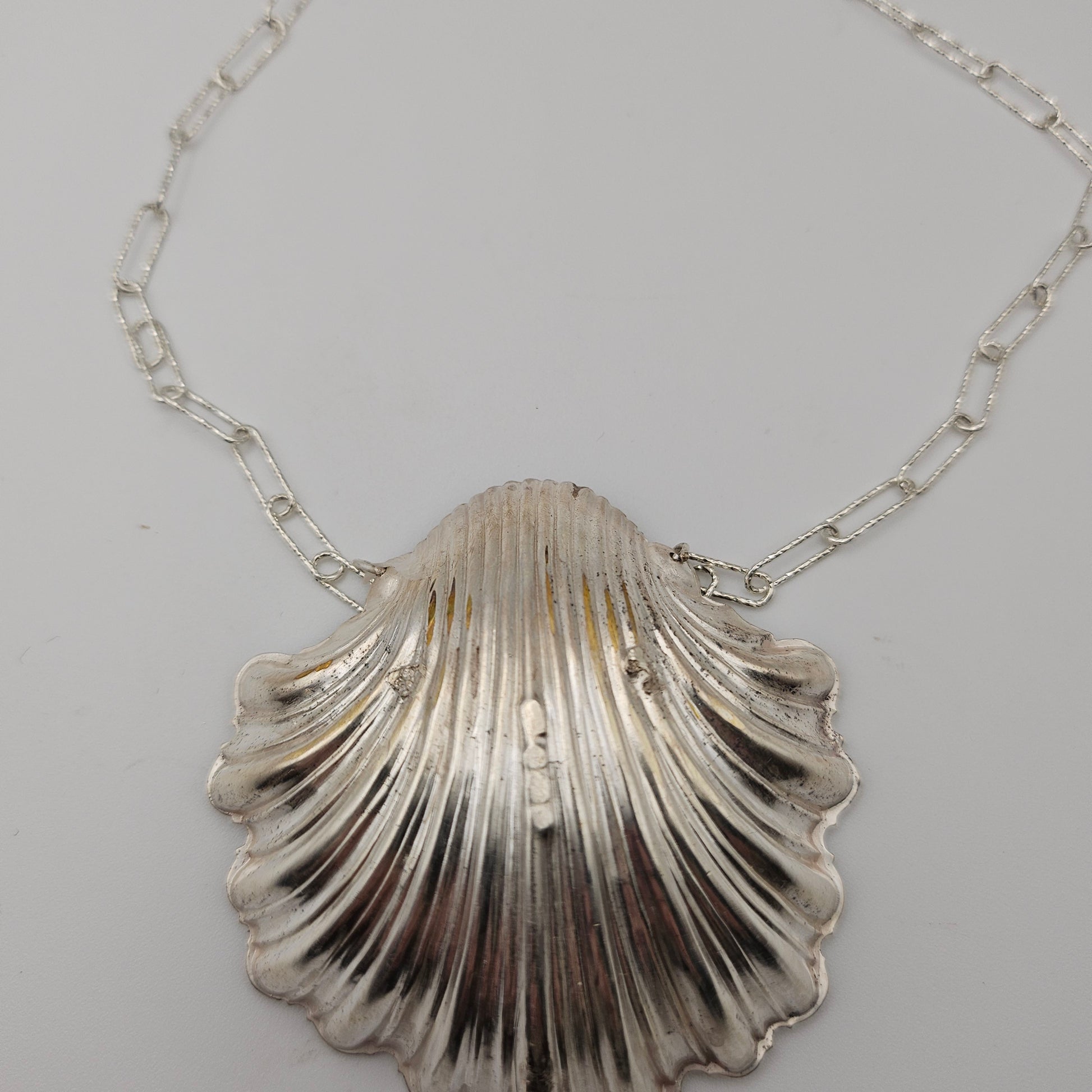 Sterling silver shell shaped pendant. This is a true bold statement piece that would compliment any situation. every day wear or soecial occasions
