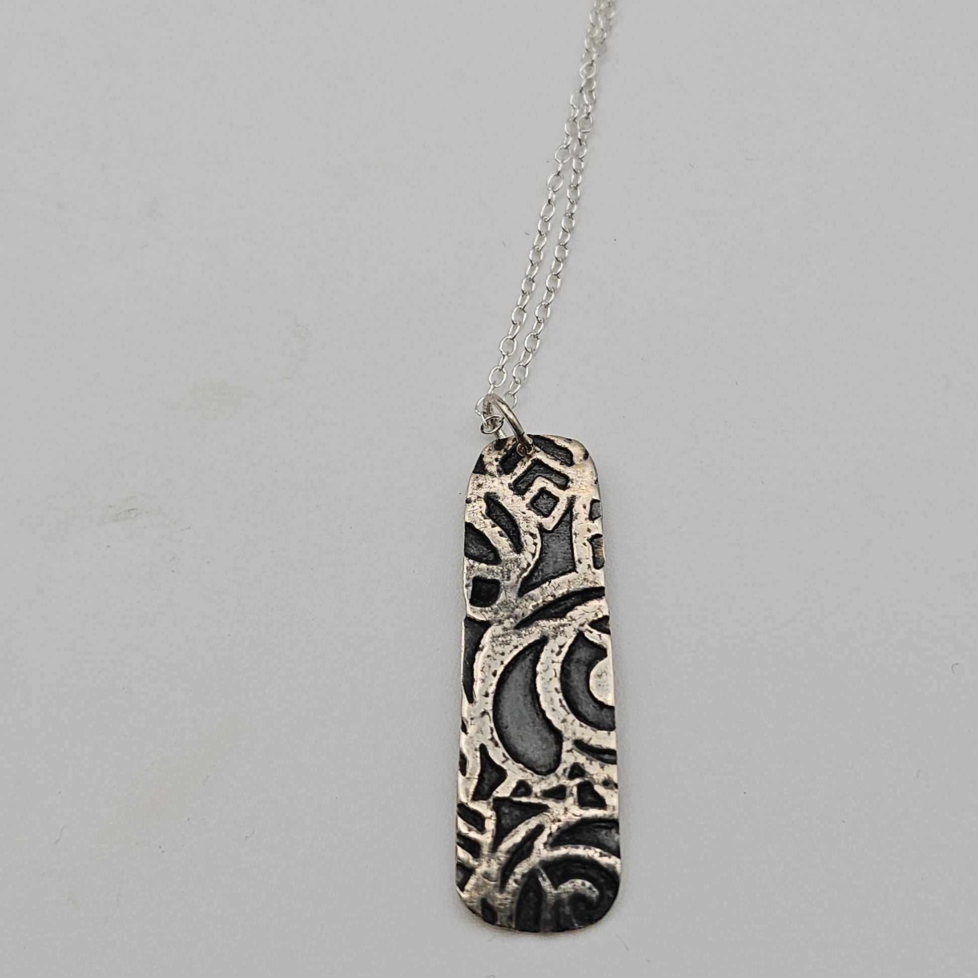 This every day pendant has had the silver darkened to show the beautiful pattern on the silver.
